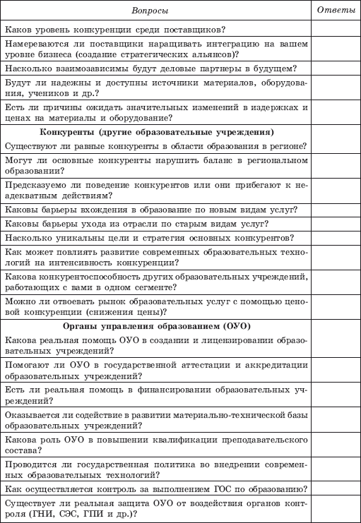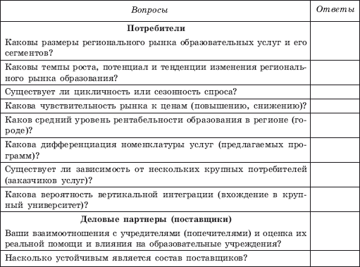 • оценка конкурентоспособности образовательных учреждений по сравнению с другими образовательными учреждениями, работающими в одинаковых сегментах рынка;