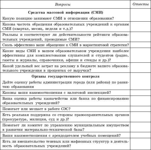Анализ мезосреды образования является жизненно важной деятельностью образовательных учреждений, проводимой ежегодно или в случае крупных изменений на рынке образования под руководством руководителя образовательных учреждений в рамках общего маркетингового исследования рынка.