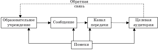 Модель коммуникационного процесса включает пять составляющих элементов (рис. 6.2). Два основных элемента – образовательное учреждение (отправитель маркетинговой информации)