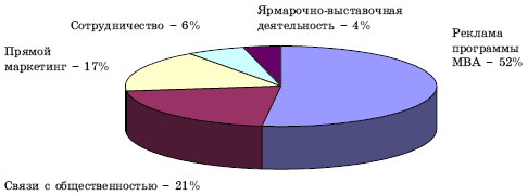 По данным интервью респондентов было установлено, что организация маркетинговых коммуникаций по программе МВА в школах бизнеса включает следующие элементы (рис. 6.6).