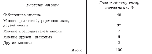 4. Насколько активно потребители образовательных услуг занимаются поиском необходимой информации? Включены ли в процесс поиска родители и друзья? Образовательное учреждение должно строить стратегию и тактику подачи информации через СМИ и специализированные издания (всевозможные справочники) в зависимости от активности потребителей образовательных услуг на стадии сбора и обработки информации: чем менее активны потребители, тем более агрессивной должна быть информационная политика вуза. Включение в процесс поиска родителей, учителей, друзей, знакомых и т. д. позволяет потенциальным студентам получить гораздо больше разнообразной информации об образовательных учреждениях и существующих образовательных услугах. Следует помнить, что общественно–бытовой канал коммуникации пользуется наибольшим доверием потенциальных потребителей. Однако проходящая по нему информация часто противоречива и в некоторых случаях затрудняет выбор потребителем наилучшего варианта получения образования. Поэтому образовательному учреждению необходимо вести «разъяснительную работу» не только с потенциальными студентами, но и с их родителями и учителями. Влияние различных мнений на выбор абитуриентом того или иного вуза представлено в табл. 7.4.