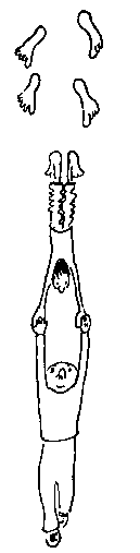 Старый турнист Клодо рассказал мне, как в небольшом городке ему сняли комнату у хозяйки, женщины злой и бесцеремонной. Она, не стучась, заходила к нему в комнату, придиралась по пустякам. Клодо решил ее попугать. Пригласил к себе партнера по работе и сделал с ним стойку — руки в руки, оставив босыми ногами несколько следов на потолке.