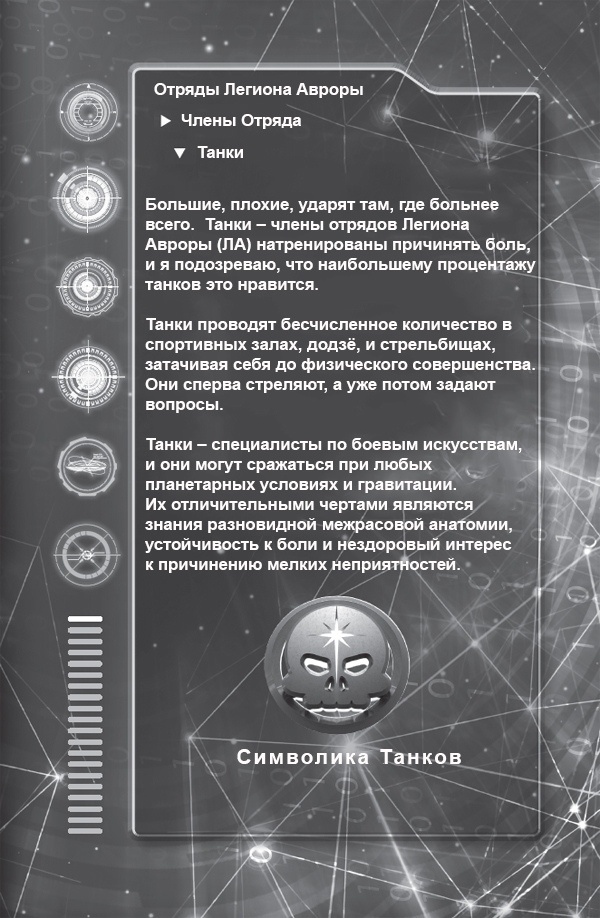 — …И я уважаю это, сэр, — говорит Скарлет Джонс, стараясь не обращать на огромный ЗНАЧОК РАКЕТЫ, мигающий у нас на дисплеях. — Но Легионер Гилрайт наш боевой специалист. Если мы хотим полностью изучить вашу защиту…