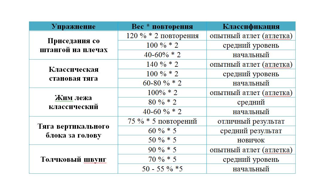 Проценты считаем от одно повторного максимума в определенном упражнении.