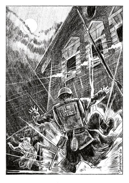 …Две гранаты тем удалось забросить на первый этаж — невесть зачем, может, думали, там пополнение? Федя расстрелял все четыре магазина «фёдоровки», и думал уже, что всё — но цепи сломались вновь, вновь откатились, оставляя неподвижные тела. Кричали раненые, однако их уже никто не вытаскивал.