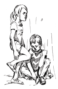 Разведчики сидели в тени сарая и наблюдали за окраинной улицей. Дома на ней стояли только по одну сторону, а по другой шел овраг — в нем-то и затаились основные силы деревенских. Подобраться к ним с улицы незаметно не получилось: десятилетний Мишка пристроился неподалеку от спуска на перевернутом ящике и простреливал глазами окрестности.
