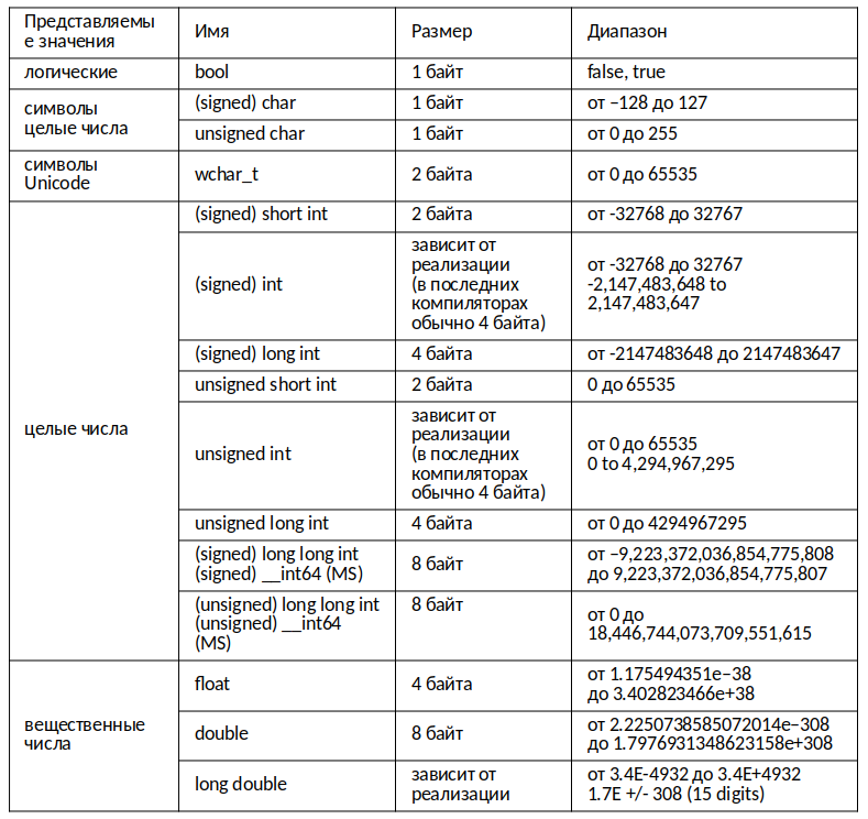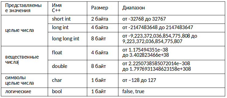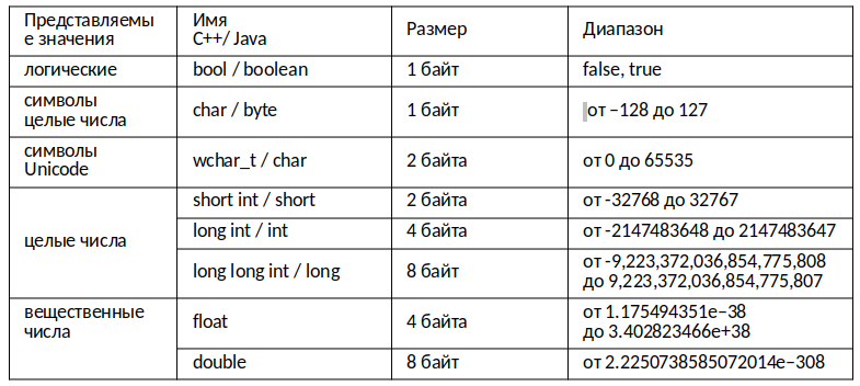 ОСНОВНЫЕ ТИПЫ ДАННЫХ В С++ (С АНАЛОГАМИ В JAVA)