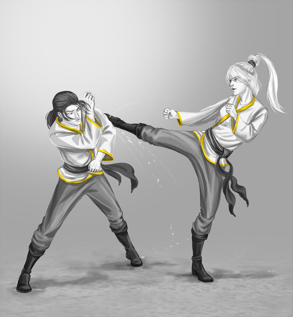 Отлично. Я плох в кулачном бою, а такое преимущество будет мне в самый раз. Я медленно двинулся к девушке, обдумывая своё первое действие. Приблизившись на три шага, резко ускорился, выжимая из себя всю доступную мне скорость и прыгнул-проскользил над площадкой к противнику. Удар кулаком в грудь, пинок в ногу. Девушка легко, словно не замечая моей стремительности, ушла от моих ударов, смещаясь в сторону и вперёд. Я дотянулся до её руки и резко остановившись, попытался закрутить её вокруг себя и выкинуть за пределы ринга. Она легко освободила своё запястье из, казалось бы, мёртвой хватки моей руки. Мы замерли, почти поменявшись местами. Я в её углу, она посередине площадки. Парни и девушки вокруг взорвались криками.