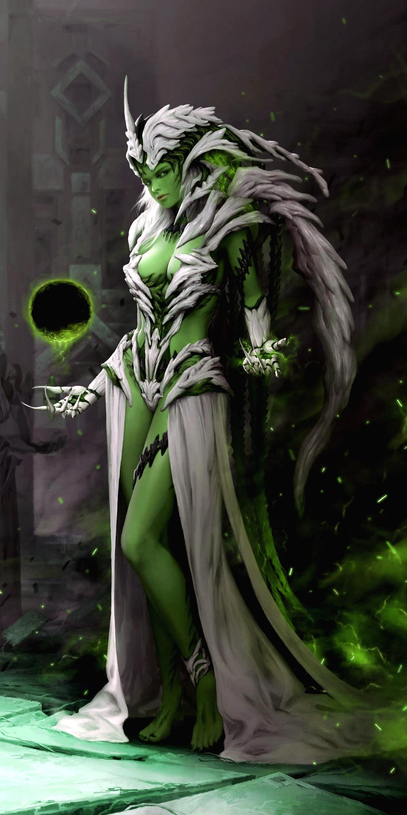 А ещё был зелёный цвет кожи, настоящая длинная юбка словно из шёлка, растущая прямо из наростов на её бёдрах, и длинные мускулистые образования, растущие из спины и полностью покрытые тем же белыми наростами. Двигались эти наросты почти в любом направлении, изгибаясь по желанию Минигуль, и представляли собой по сути ещё одну пару конечностей, призванных играть роль инструмента нападения и защиты.
