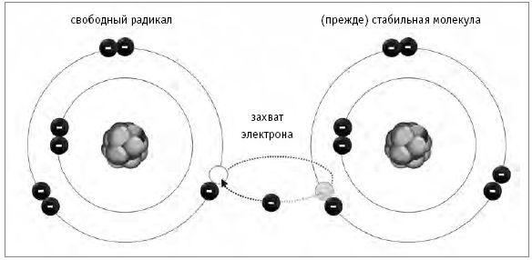 Рис. 1.2. Антиоксиданты отдают электроны свободным радикалам, и при этом сами не становятся свободными радикалами