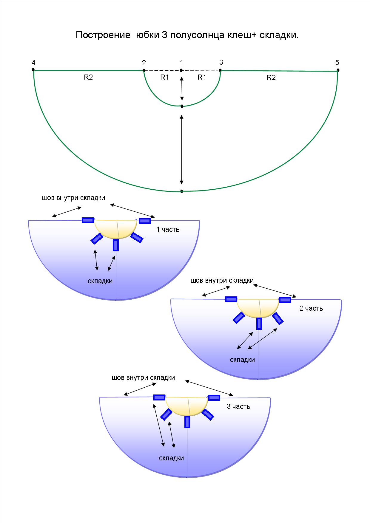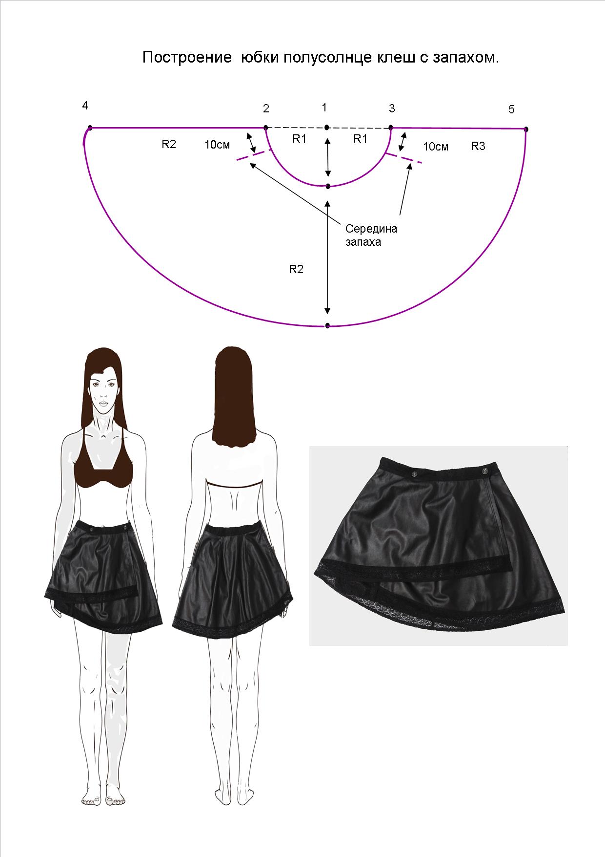Построение юбки полусолнца клеш с запахом
