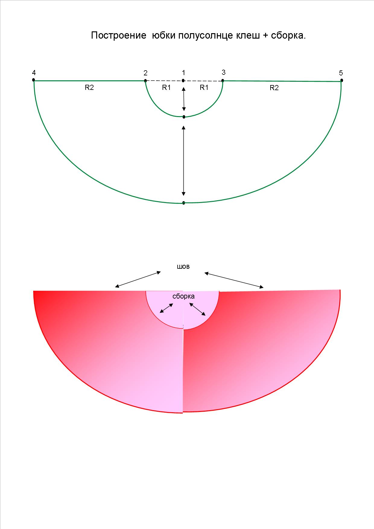 Построение юбки полусолнца клеш + сборка
