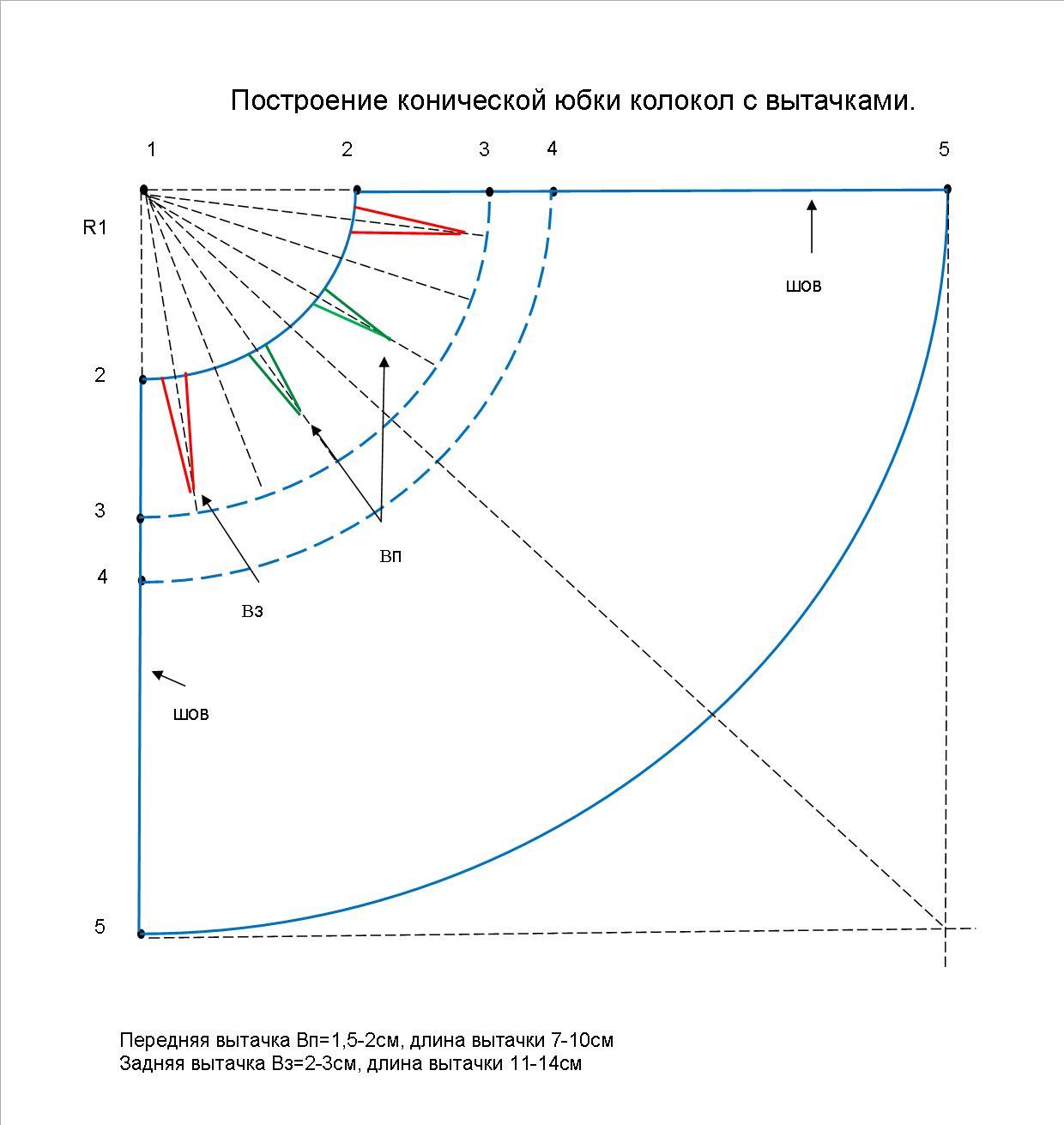 Построение конической юбки колокол с вытачками
