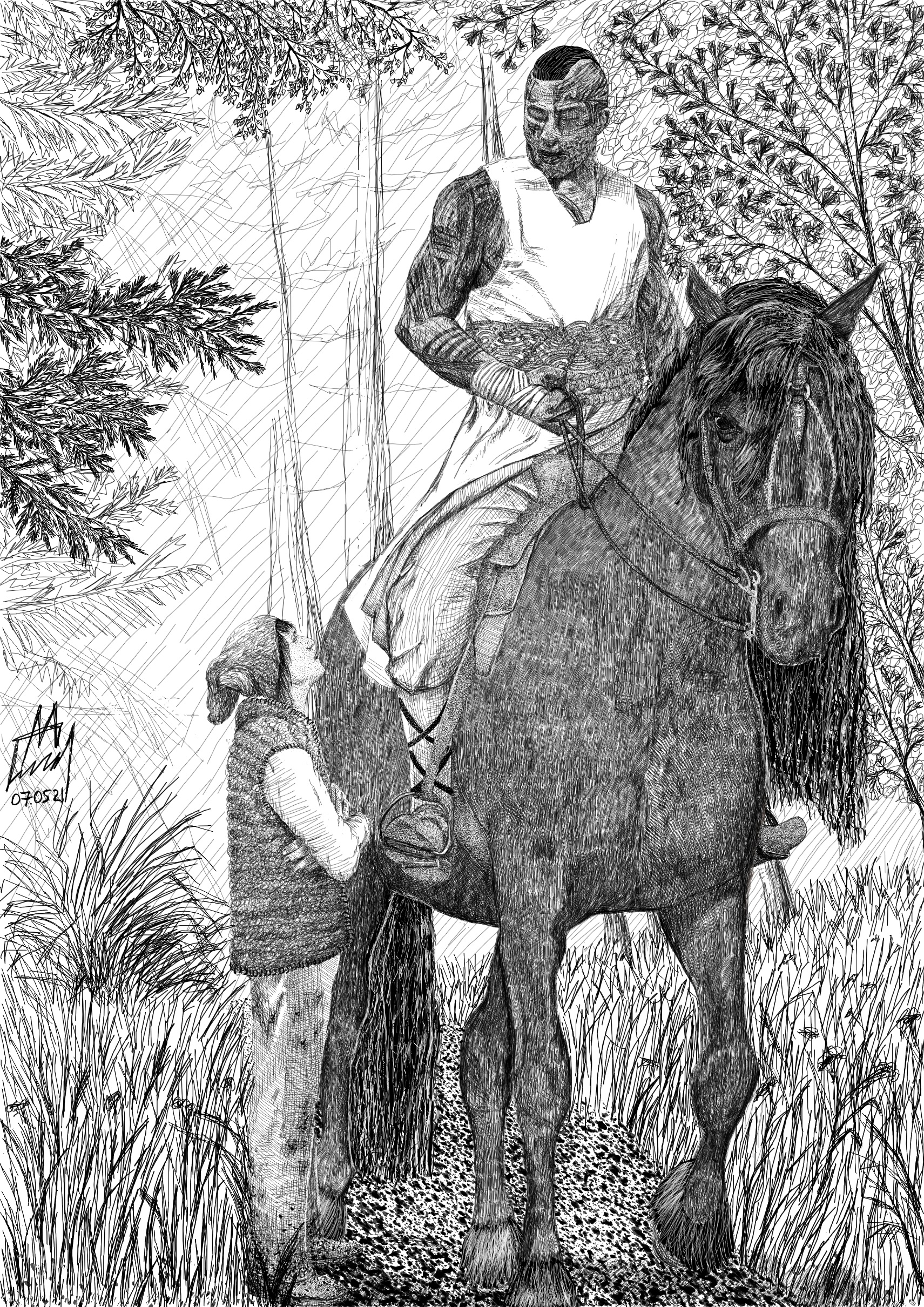 Раньше, чем замешательство Джорри прошло, перед ним выросла гигантская вороная лошадь и едва не затоптала юношу, так и не сдвинувшегося с места. Высокий широкоплечий всадник что-то прорычал, осаждая животное, а потом обратился ко встреченному пешему с неприятной усмешкой: