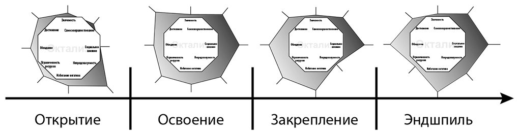Октализ второго уровня: факторы четырех этапов путешествия игрока