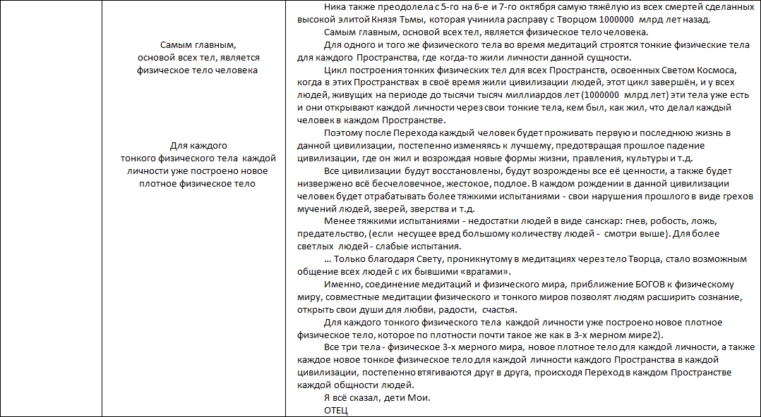 Такой Переход никогда ещё не происходил в Космосе, ибо совпадают завершения циклов, отпущенных Небесными Родителями для развития жизни, как на нашей планете, являющейся сердцем Космоса, так и циклов, соответствующих периодам системного, галактического и вселенского уровня.
