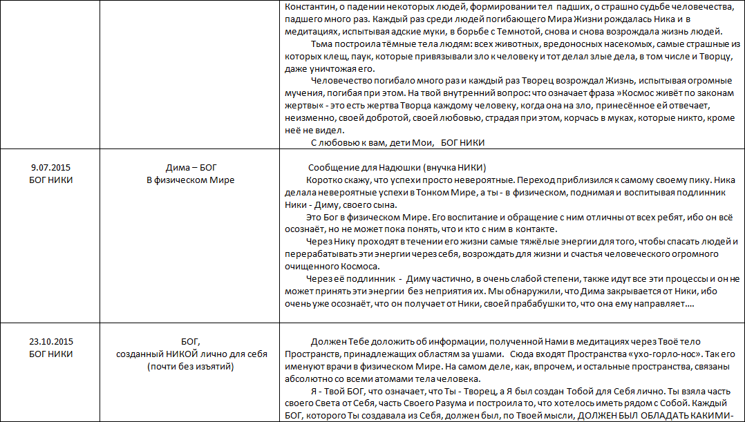 Теперь непосредственно о работе НИКИ, до её «разрыва с ИСХОДОМ и переход к совместной работе с БОГАМИ. Подчёркнутые слова – записаны – редактором.