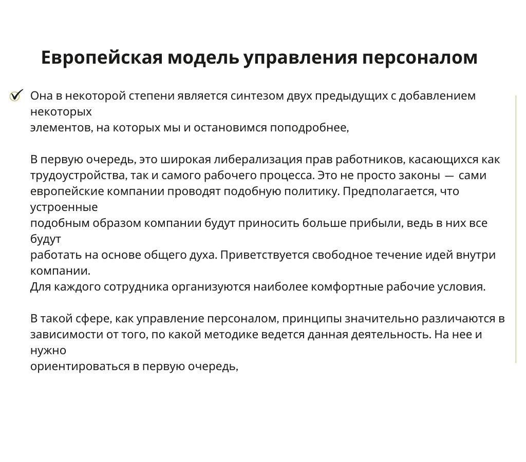 Европейская модель управления персоналом строится на пересечении подходов из американской и японской моделей.