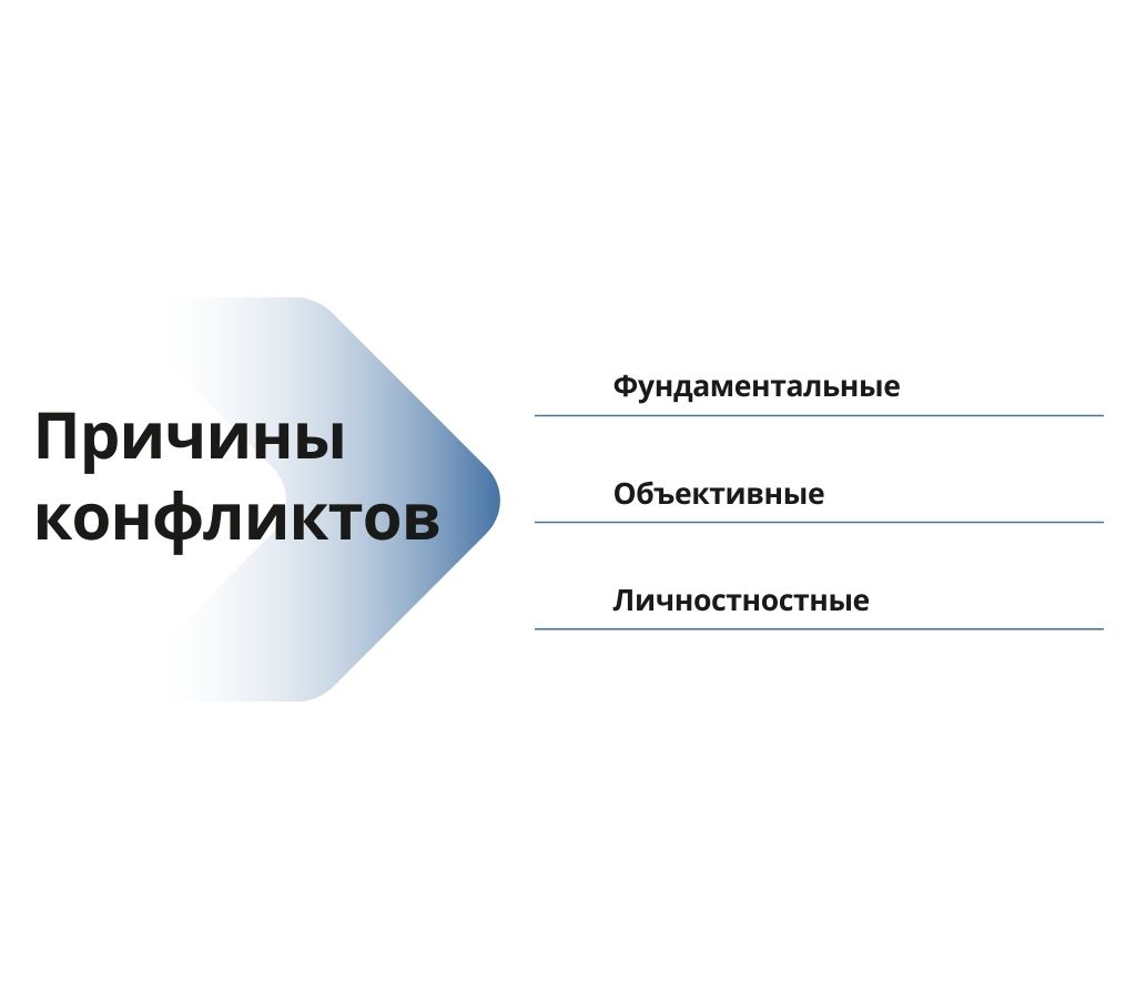 Конфликт – явление системное, и он формируется по закону причинно-следственных связей. Ни один конфликт не возникает сам по себе, для возникновения и проявления конфликта, как мы уже разобрались, необходимо наличие: