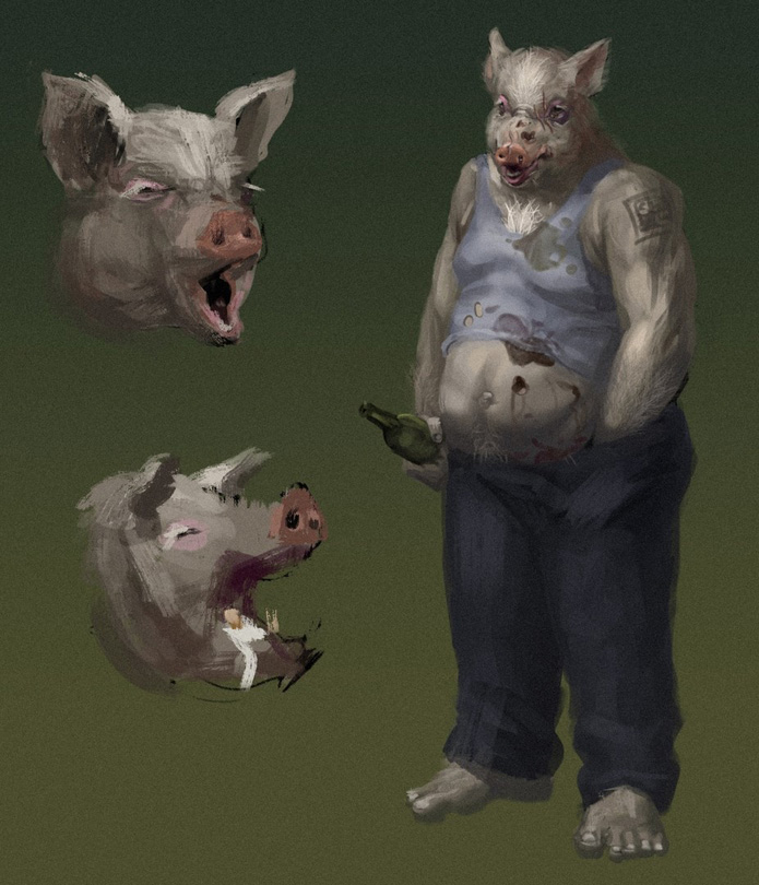 Грузно, вальяжно, он надвигался на меня, любопытно шевеля влажным носом. Я вжимался в стенку за спиной, пока это существо неспешно усаживалось на табуретку напротив перед тарелкой с дымящейся дрянью. Всхрюкнув, он резко выбросил в мою сторону свою толстую, как окорок, покрытую светлой шерстью руку: