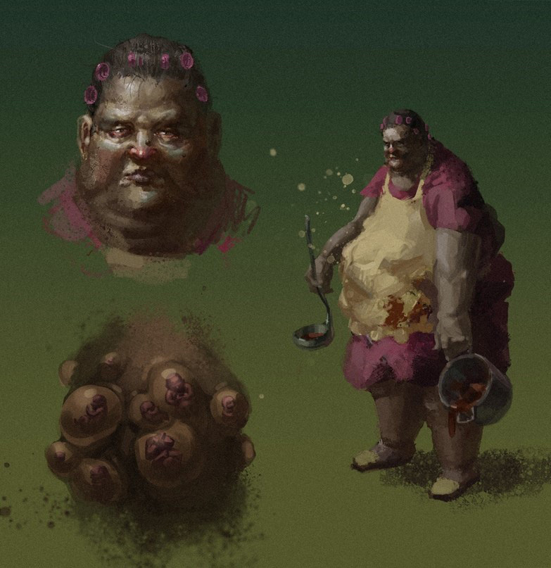 Обернувшись, я увидел, что свинорылый толстяк, поигрывая грязным зазубренным ножом, медленно приближается ко мне. Жуткая, покрытая гнилостными нарывами морда гадко ухмыляется, а в прорезях поблескивают плотоядные глазки. Увидев, как я пытаюсь подняться с пола, он ускорился, за ним последовала и его безразмерная жена, все еще сжимающая в руке измазанный какой-то дрянью половник. Казалось, сейчас-то все и кончится, как вдруг…