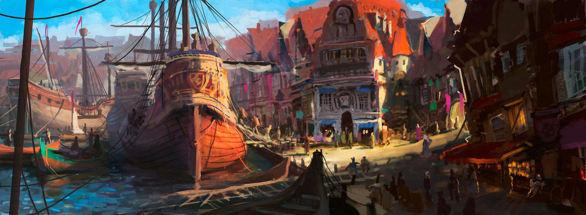 Средних размеров портовый городок[1]с красными черепичными крышами. В основном двухэтажные постройки. Всего несколько трёхэтажных зданий выбивалось из общей массы. Одно из них принадлежало ратуше, второе — банку. Знакомый символ в виде крепкой руки, вцепившейся в монету — Стоунхоллы. Дворфы имели филиал даже здесь.