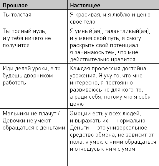 Мы всегда использовали языковое воспитание, вот только вопрос: в конструктивном или деструктивном направлении? Проанализируйте, как разговаривали с вами ваши родители, чувствовали ли вы себя после этих разговоров плохо? Обсуждали ли родители вас, сравнивали с кем-то? Выпишите на листок бумаги те слова, которые вы слышали в свой адрес. Сколько там хороших слов? Сколько слов, которые вас расстраивали? Говорили ли вам родители, что любят вас? Делали ли комплименты? Осуждали ли вас? Принуждали ли вас? Запишите все, что вспомните, и посмотрите, какие чувства в вас это вызывает. Если на вашем листке очень грустные воспоминания, связанные с оскорблениями и унижениями, то я предлагаю это оставить в прошлом, начните говорить себе хорошие слова прямо сейчас, начните ценить себя и уважать. Напротив слов, которые вас огорчали в детстве, напишите хорошие слова, поддержите себя и возвращайтесь мыслями к этим хорошим словам. Например: