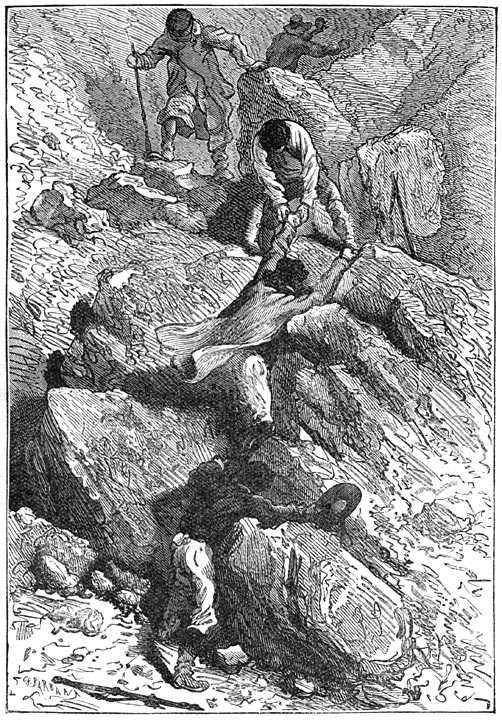 Всего пятьсот футов отделяли путников от площадки, на которой они хотели остановиться на ночлег, но непрестанные зигзаги удлинили это расстояние до двух миль. Почва все время, так сказать, уходила из-под ног. Откосы горы часто были столь отвесны, что путники соскальзывали вниз по застывшей лаве, если выветрившиеся борозды не давали опоры ноге.