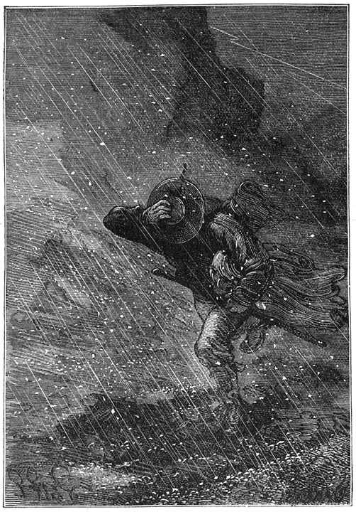 В первую неделю марта погода изменилась. В начале месяца было полнолуние и стояли сильные жары. Чувствовалось, что воздух пропитан электричеством, и можно было опасаться более или менее продолжительного периода гроз. И действительно, 2-го числа раздались яростные раскаты грома. Ветер дул с востока, и начавшийся град ударил прямо в фасад Гранитного Дворца; градины щелкали, как заряды картечи. Пришлось плотно запереть двери и ставни окон — иначе комнаты были бы залиты водой.