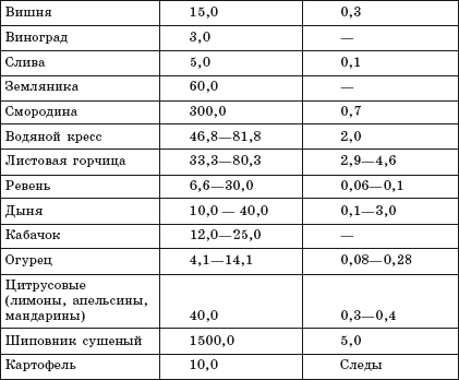 Как видно из таблицы 5, витамин Е содержится во многих культурных растениях, а вот селен входит в состав растительных белков, и его содержание резко зависит от содержания в почве и его доступности. Так как почвы в Европе обеднены селеном вследствие вымывания и интенсивного сельского хозяйства, то его дополнительный прием очень целесообразен. Следует помнить, что витамин С и селен (селенит натрия) взаимно ингибируют (уменьшают) усвоение один другого. При необходимости приема обоих веществ рекомендуется селен принять утром натощак, витамин С и продукты, содержащие его, на 1 час позже.