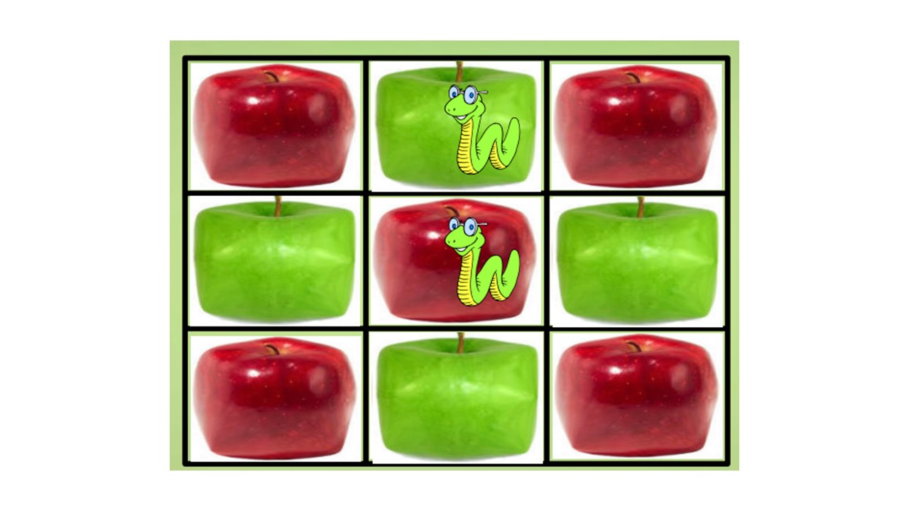 Подсказка в том, что надо посмотреть, как меняется цвет, когда червь переходит из одного яблока в другое.