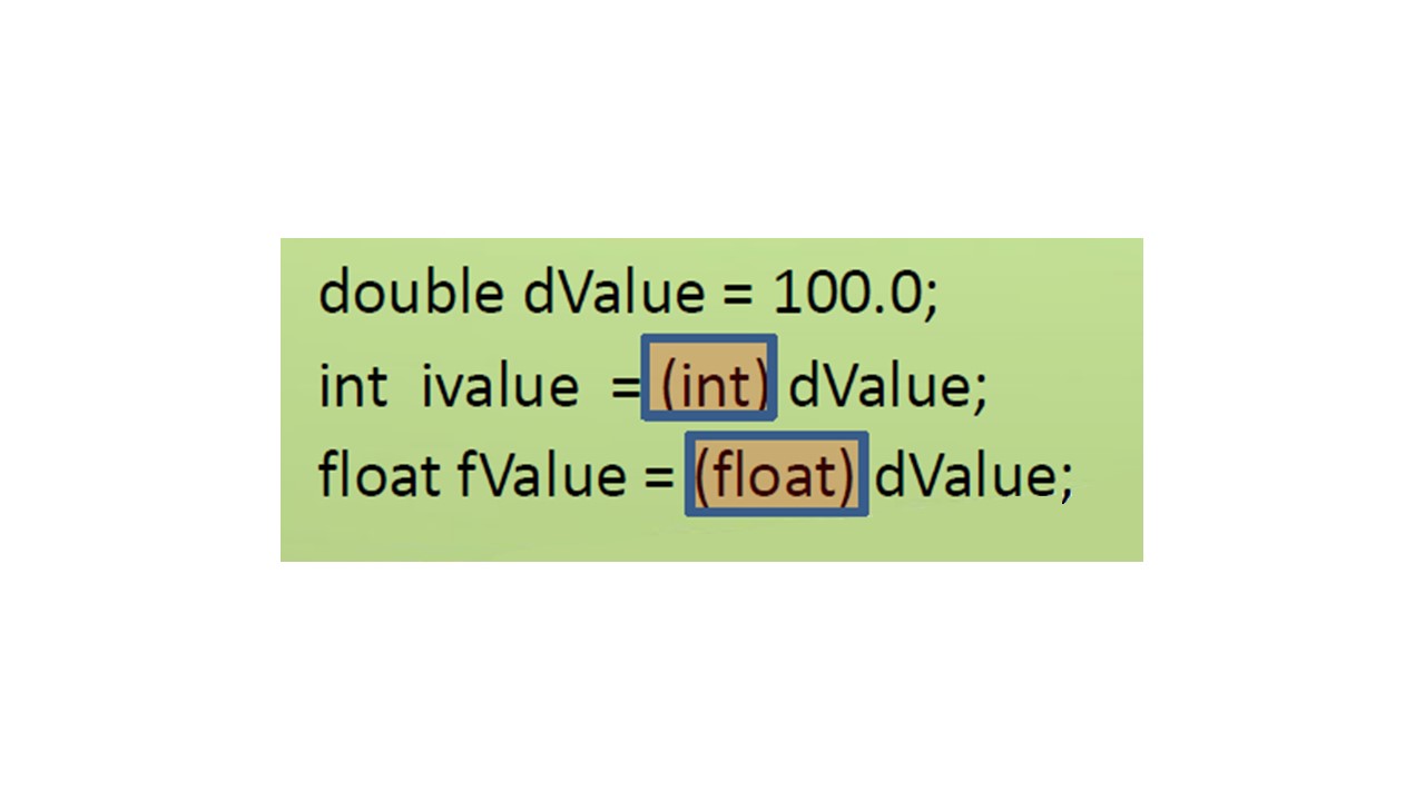 Например, если dValue является double переменной, компилятор не допустит присвоения int или float без преобразования явного типа, указав int или float в скобках.