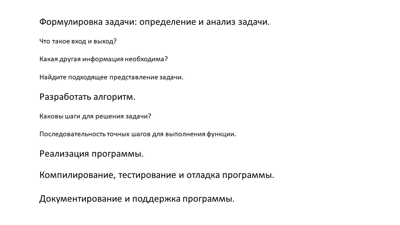 При решении задач с помощью компьютера, мы также хотим перечислить шаги на языке, который могут легко понять все те, кто участвует в решении проблемы, это особенно важно, если вы работаете в команде. Такую последовательность шагов часто называют алгоритмом.
