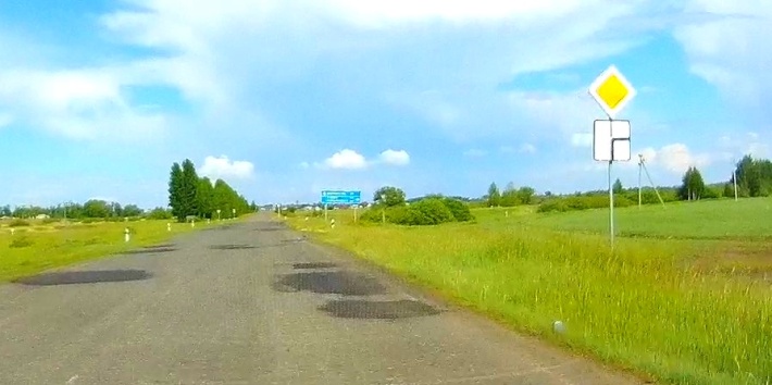 Главная дорога, обозначенная знаком 2.1. Если продолжить движение прямо, то мы должны уступить транспорту справа, двигающемуся по главной дороге