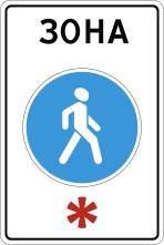 «Пешеходная зона» – территория, предназначенная для движения пешеходов, начало и конец которой обозначены соответственно знаками 5.33 и 5.34.