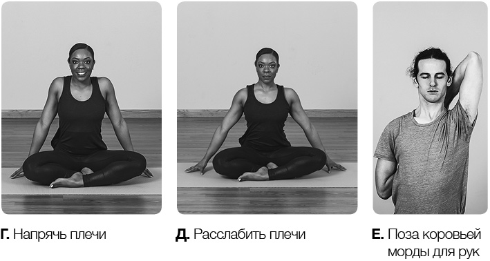 (Начните с вращения шеей и плечами.) Лягте на спину и полежите несколько минут, давая телу возможность расслабиться и успокоиться. Сосредоточьтесь на выдохе и мысленно следуйте за ним до самого конца – точки, в которой вы ненадолго задерживаете дыхание перед следующим вдохом. Сфокусируйтесь на дыхании в течение нескольких минут.