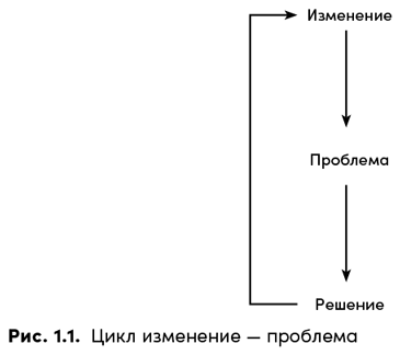 Каждая проблема или благоприятная возможность, вызванная изменением, приводит к появлению решения, которое вызовет еще большее изменение, и в результате мы столкнемся с новой реальностью и с новым набором проблем или благоприятных возможностей [8] .