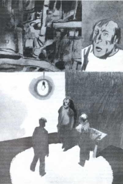 Вдруг откуда-то из-за конторского помещения возник сторож. Он как-то странно расставлял шаркающие ноги, так что казалось, будто он движется сразу в двух направлениях. Сторож был до того тощ, что выглядел, как ходячий скелет.