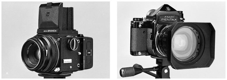А. Bronica ETR – типичная однообъективная зеркальная камера. Благодаря уменьшенному формату 6 x 4,5 см она меньше и легче стандартных камер 6 x 6 см.