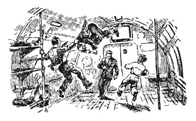 К этому нужно добавить еще очень многое: установки для очистки и переработки воздуха, ля отопления, охлаждения; конденсаторы; энергетическая система в стенках корабля; одежда; скафандры; посуда; аптечка; разные инструменты и приборы; радиостанция; радиолокаторы; кино- и фотоаппараты; оружие и припасы для него; справочники; почтовые ракеты (о них я расскажу потом) и разное мелкое оборудование. Все это весит более 5 тонн — очень мало, если учесть, сколько необходимо взять с собой для продолжительного межпланетного путешествия.