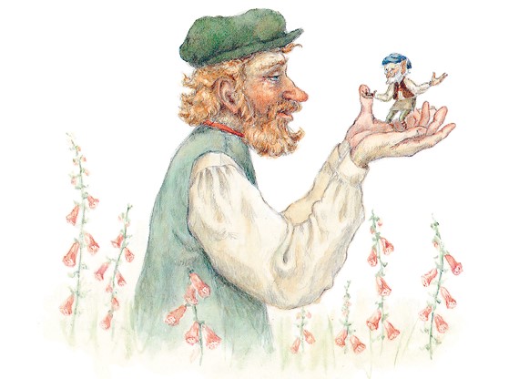 Что-то щёлкнуло, и цветок распустился совсем. Это был точь-в-точь тюльпан, но в самой чашечке на зелёном стульчике сидела крошечная девочка, и за то, что она была такая нежная, маленькая, всего с дюйм ростом, её и прозвали Дюймовочкой.