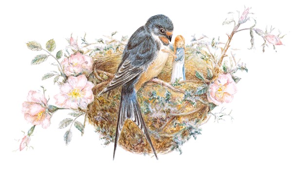 – Вот мой дом! – сказала ласточка. – А ты выбери себе внизу какой-нибудь красивый цветок, я тебя посажу в него, и ты чудесно заживёшь!