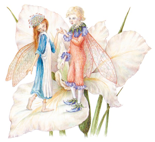 Внизу лежали большие куски мрамора – это свалилась верхушка одной колонны и разбилась на три куска, между ними росли чудеснейшие крупные белые цветы. Ласточка спустилась и посадила девочку на один из широких лепестков. Но вот диво! В самой чашечке цветка сидел маленький человечек, беленький и прозрачный, точно хрустальный. На голове у него сияла прелестная золотая корона, за плечами развевались блестящие крылышки, а сам он был не больше Дюймовочки.