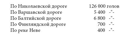 В Петербурге же на площадке такой бык продается не менее 90 рублей. Затем, вычтя расходы, сопряженные с продажею быка на площадке, комиссионные и за вгон 2 рубля 50 копеек, мы получим свыше 10 рублей, которые представляют чистый барыш прасола с каждого проданного им быка.
