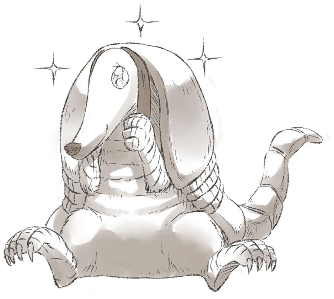Сердце ушло в пятки, я чуть сальто не сделал из позы лёжа, вжавшись в прохладный камень боковой стены. Нарушитель спокойствия ловко скатился с топчана на пол. Я же вперил расширившиеся от страха глаза в… существо. Было оно небольшого росточка и, кажется, несколько раз заявлялось на мои тренировки на стадионе. Полумрак камеры помешал мне рассмотреть детали, но ближе всего внешне гость напоминал помесь броненосца и муравьеда. Плотные складки на спине образовывали подобие панциря, короткие лапы оканчивались внушительными когтями, смешные уши торчали трубочками с боков, а длинная вытянутая хитрая морда словно была создана доедать остатки варенья из глубоких банок.