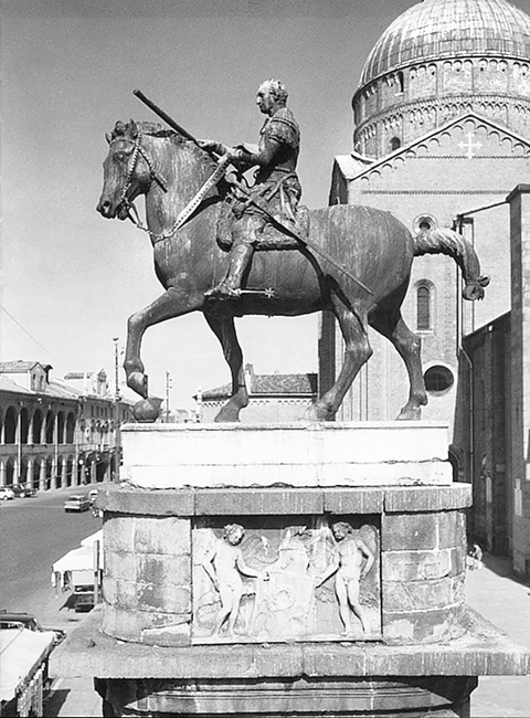 Бывает так, что автор для создания гармонии и лучшего восприятия скульптуры зрителем деформирует ее изначальные пропорции. Так поступали древнегреческие мастера, в том числе знаменитый Фидий при работе над монументальными группами Парфенона. Если сделать фигуру с правильными пропорциями и поместить ее на антаблемент храма – часть архитектурного ордера выше колонны, то с земли она будет казаться деформированной. Зная особенности восприятия, античные скульпторы заранее учитывали ту высоту, на которой будет стоять изваяние, и с помощью математических расчетов высчитывали необходимые пропорции так, чтобы они идеально смотрелись с высоты зрительских глаз. Позднее в скульптурных композициях типа «всадник верхом на лошади» мы будем видеть несоблюдение реальных размеров человеческого тела по отношению к туловищу лошади. Памятник Гаттамелате (1453), созданный Донателло, предельно ясно демонстрирует, что будет, если соблюсти все необходимые пропорции. Тело человека кажется маленьким по сравнению с лошадью, теряется ощущение силы и красоты человека.