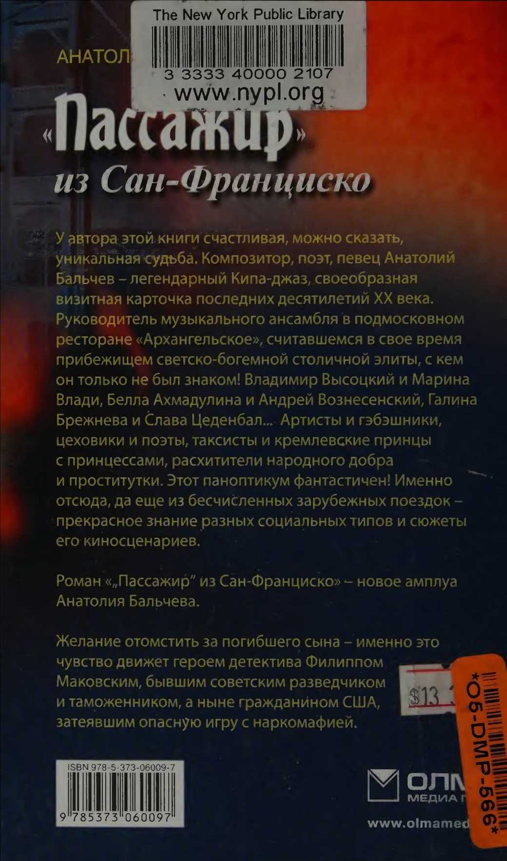 А сейчас я рад представить читателю новое амплуа Анатолия Бальчева — увлекательный роман «Пассажир из Сан-Франциско». Бросайте все земные дела и окунайтесь в вечность!