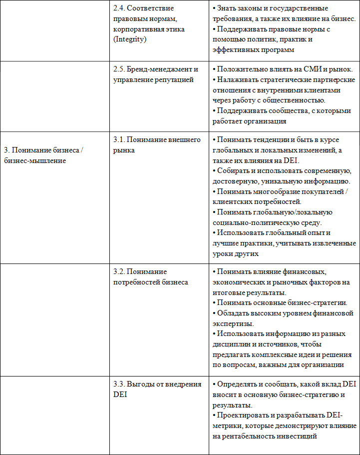 3. Понимание бизнеса / бизнес-мышление: понимание внешнего рынка, понимание потребностей бизнеса и выгод DEI.