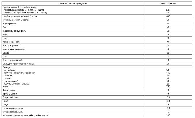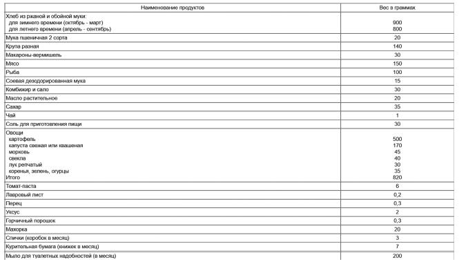 Норма № 1 суточного довольствия красноармейцев и начсостава боевых частей действующей армии, начиная с 20 сентября 1941 г.
