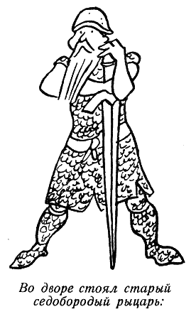 Во дворе стоял старый седобородый рыцарь в золотой броне, опираясь на огромный заржавленный меч.
